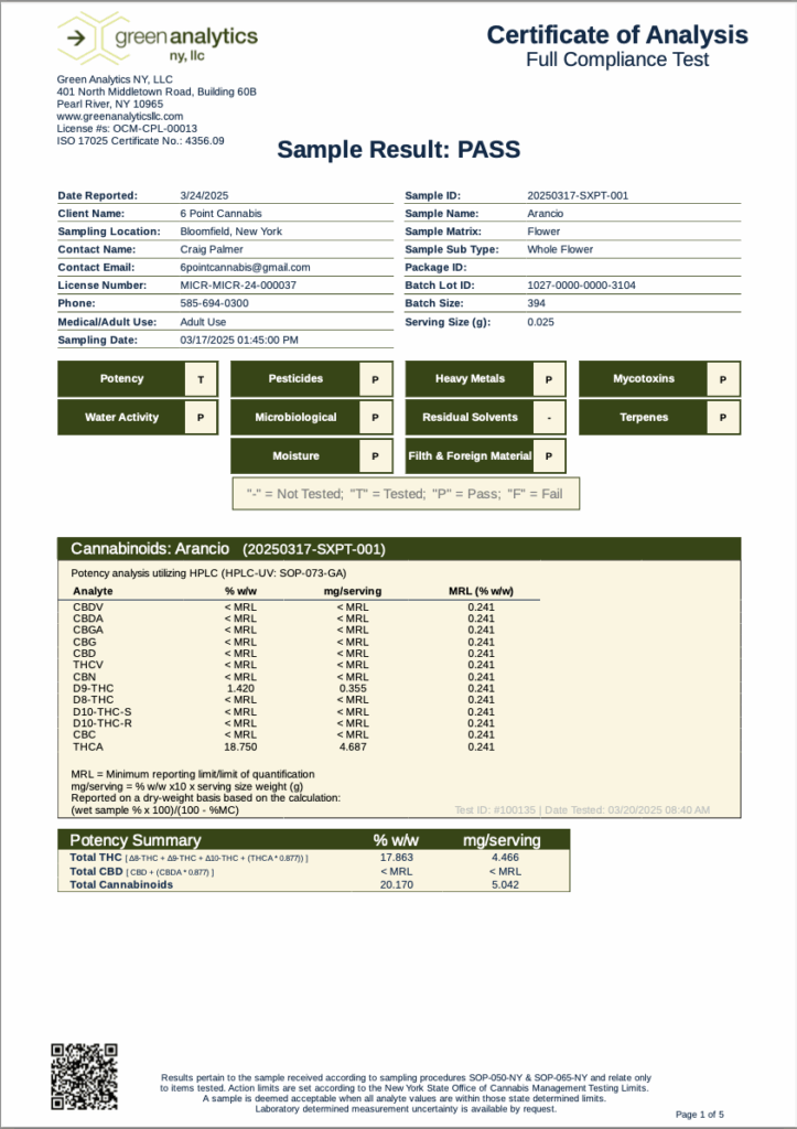 This is a COA for our Arancio strain from 3/24/2025.